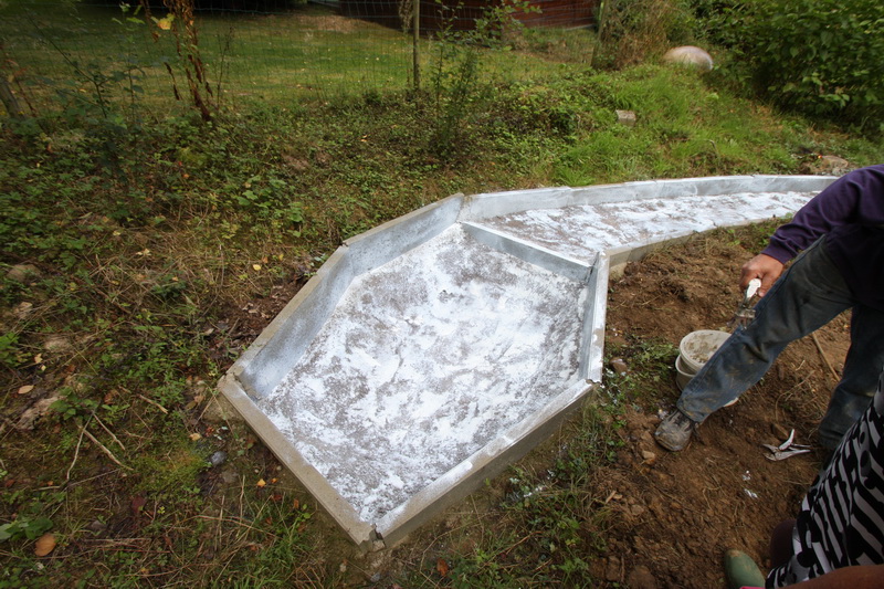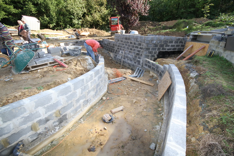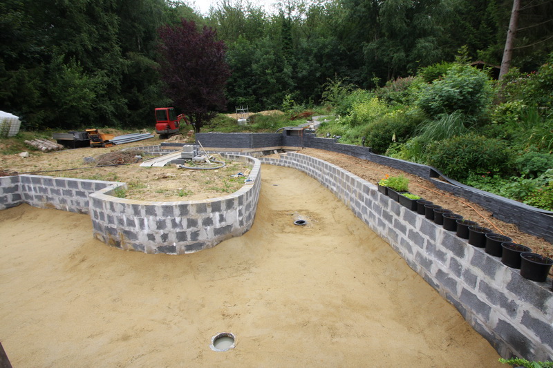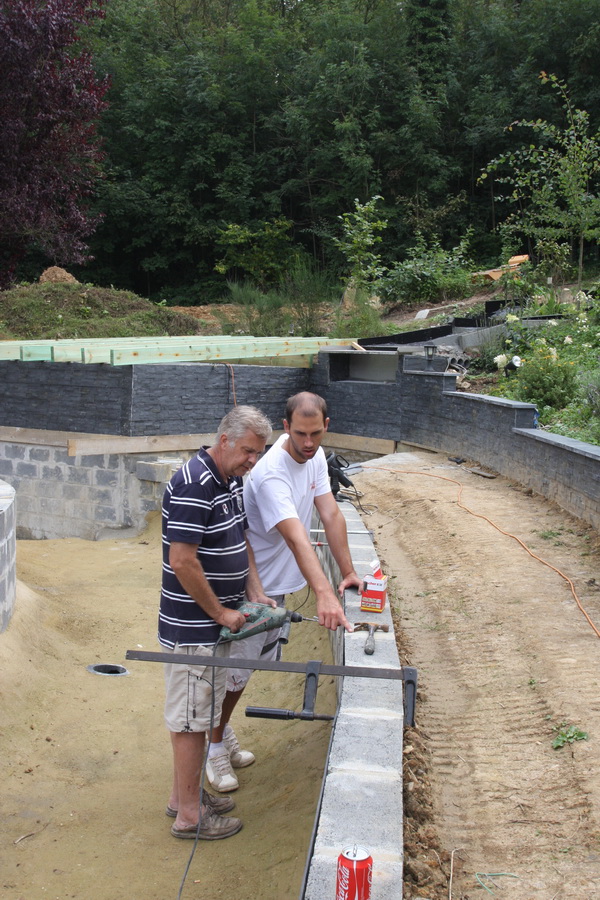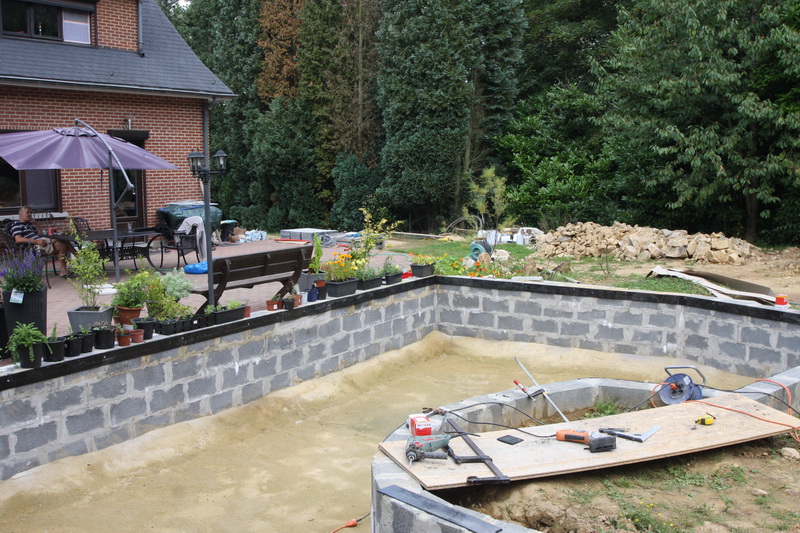 2012 les objectifs ont été atteint avec la finition du gros œuvre déjà un grand pas accompli, petit rappel des mensurations : 185m³ 31m de long dans la médiane, fosse à 1.70 de fond, profondeur majoritairement 1m locale technique de 16m² pour les commandes et la pré filtration mécanique le filtre biologique sera extérieur au local en question.
