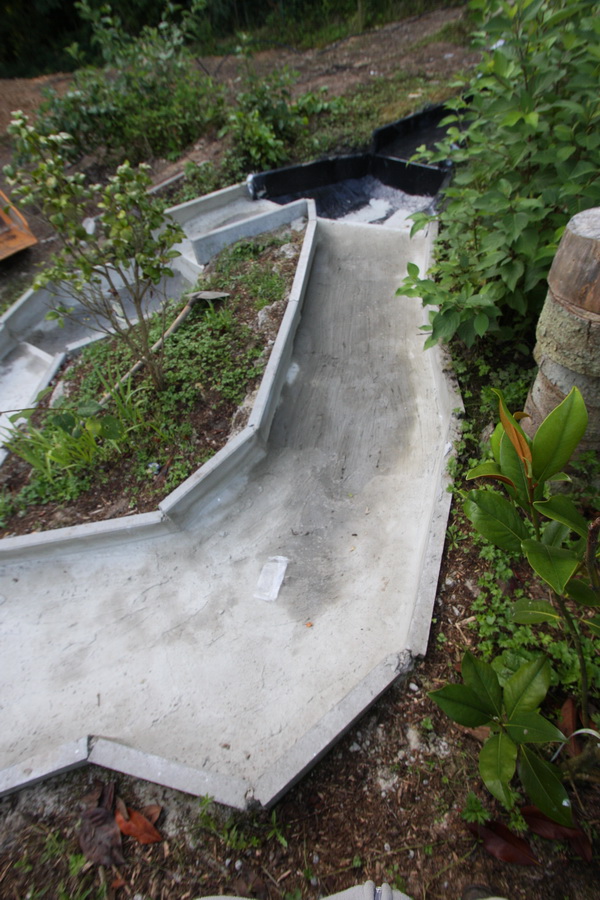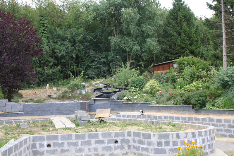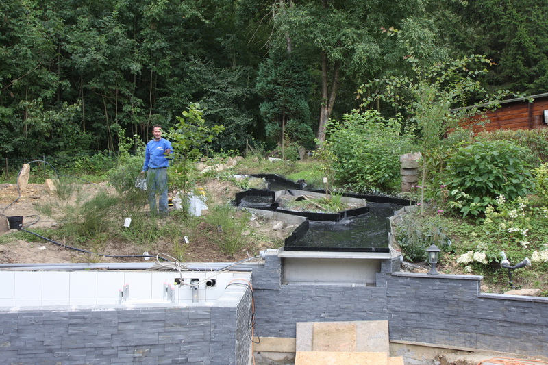 Voilà une bonne chose de faite, la cascade fait 15m de long pour un dénivelé total de 3m et sera alimenté par une pompe de 80.000 l/h
