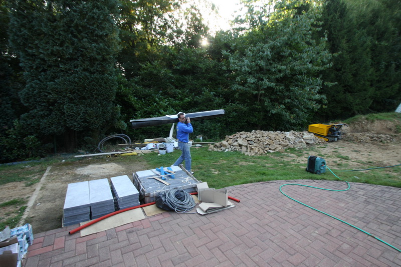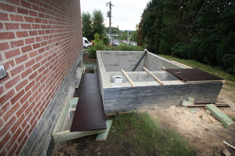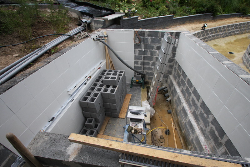 Le bassin d'hiver à reçu aussi ces plaquettes décorative et nous avons commencé la coursive entre la maison et e bassin avec un planché amovible histoire d'avoir accès à la partie technique de ce bassin