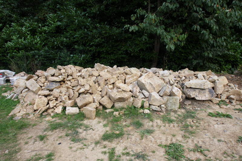 J'ai regroupé les roches extraite lors de l'excavation du bassin, il y en a déjà pas mal