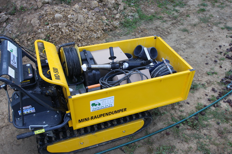 Placement du stabilisé du fond du bassin, en effet le fond du bassin était toujours en terre et pour des question de facilité de pose de l'HPDE il fallait faire un fond adapté, pas de chance lors de cette opération nous avons cassé une bonde de fond qui a du être remplacée