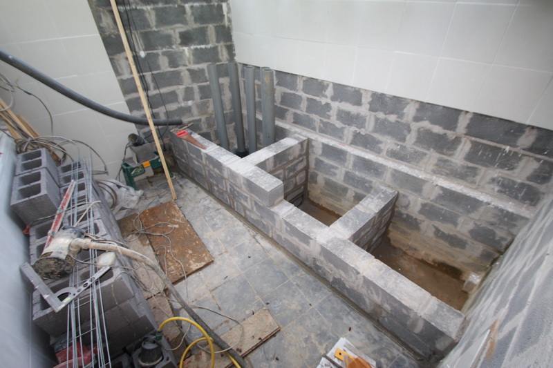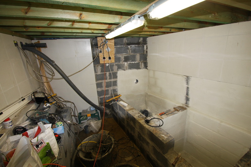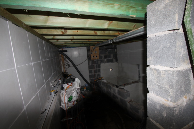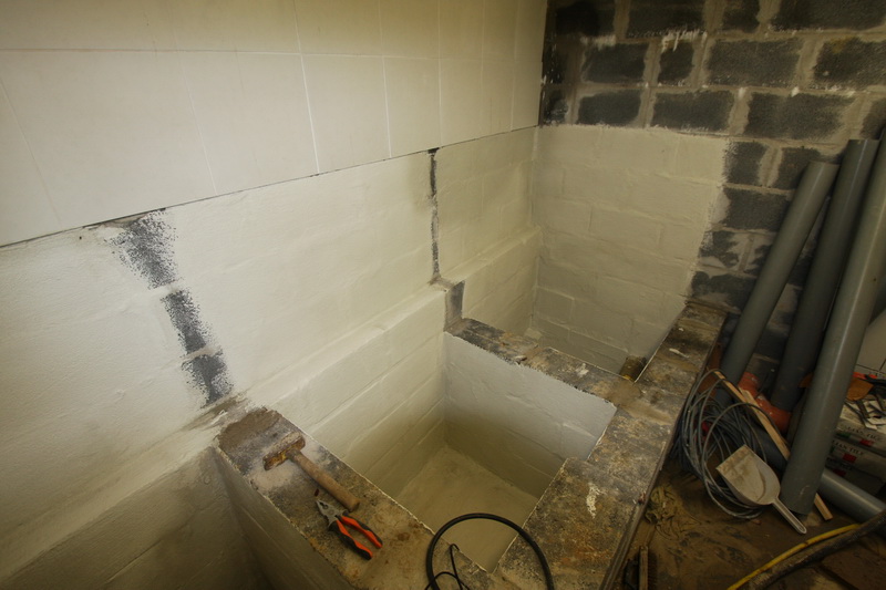 les murs des cuves ont été étanché à l'aide d'un ciment de cuvelage étanche en deux couches, encore une autre technique d’étanchement.