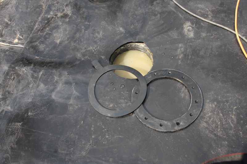 Pour l'étanchéité des bondes, il faut d'autres joints que ceux livrés d'origine, des joints de 5mm d'épaisseur, l'anneau de pressage doit être en HPDE et a du être usinée sur place car il faudra faire une extrusion sur son pourtour